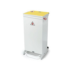 ¥ Fire Retardant Bin with anti-bacterial coating and slow, silent closing feature¥ Can be easily moved due to wheel mounts and handle at rear¥ Colour: White¥ Capacity: 50L¥ Size: 640 x 510 x 440 mm