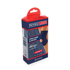 The Physiologix Custom Fit Open Knee Support is recommended for minor sprains and strains or relief from stiff, arthritic knees. The Physiologix Custom Fit Range provides firm support and a custom contour design for the perfect fit which helps eliminate bunching. It uses AIRFLEX Technology which is the ultimate material for compression and heat retention to help improve blood circulation and reduce pain.¥ Provides firm support to weak or injured knees ¥ Lined with breathable fabric which moves moisture away from your body keeping you cool and comfortable ¥ Lightweight and comfortable for all day wear ¥ Custom contour design minimises bunching ¥ Extra padding around the knee for extra comfort and stability.Size GuideS - (30-35cm)M - (35-40cm)L - (40-45cm)XL - (45-50cm) Physiologix is an innovative and dynamic tape and support sports therapy range developed and endorsed by chartered physiotherapists and professional athletes to aid in every stage of an injury whether it be prevention, treatment or recovery. Developed by Fleming Medical in 2017 alongside chartered physiotherapists and professional athletes, the Physiologix range uses the latest in innovative design and fabric technologies which provide outstanding comfort and uncompromising support to aid in injury recovery. Physiologix is now recognised by the Irish Society of Chartered Physiotherapists and has grown to include over 100 products. The tape range includes Kinesiology, Sports, Cohesive and Zinc Oxide tapes in different colours and sizes that offer varying levels of compression and adhesion. The support range includes solutions for most body parts and has four levels in the range: Essential, Advanced, Ultimate and the newly launched Custom range.