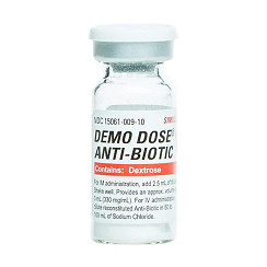 Demo Dose anti-biotic white powder -1g. Now you can incorporate an antibiotic into yourscenarios. Vial contains white powder for reconstitution for single use.