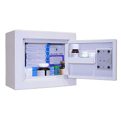 ¥ Controlled Drug Cabinet complies with and exceeds the Misuse of Drugs Regulations: 1973¥ Design exceeds BS2881:1989, the requirement for controlled drug cabinets¥ Size 300mm x 250mm x 150mm¥ Capacity 11 Litres¥ 10Kg Approx¥ 1 internal fixed shelf¥ 2mm thick cold reduced mild steel sheet¥ 3mm thick anchor plates at all fixing points¥ 1 seven lever safe lock.¥ Hardened steel mortice bolt¥ Keys cannot be removed when the door is in the un-locked position.¥ 2 keys provided per lock¥ Optional extras - wireless door monitor, nurse call system, door open warning light
