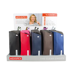 MEDISPEX READING GLASSES DISPLAY - 30 PAIRSContains: Black Frames +2.00 x2Black Frames +2.50 x2Black Frames +3.00 x2Black Frames +3.50 x2Pink Narrow Frames +2.00Pink Narrow Frames +2.50 x2Pink Narrow Frames +3.00 x2Pink Narrow Frames +3.50Wire Rimmed Frames +2.00 x2Wire Rimmed Frames +2.50 x2Wire Rimmed Frames +3.00 x2Wire Rimmed Frames +3.50 x2Purple & Brown Frames +2.00Purple & Brown Frames +2.50Purple & Brown Frames +3.00Purple & Brown Frames +3.50Teal & Black Frames +2.00Teal & Black Frames +2.50Teal & Black Frames +3.00Teal & Black Frames +3.50