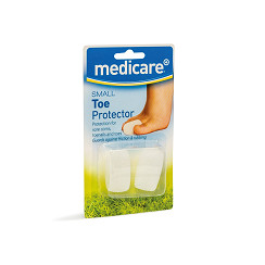 Medicare Toe Protector Small Foam (2 Pack)Toe Protectors for corns and sore toes Product Features:¥ Medicare Small Toe Protector helps protect and cushion tender areas on larger toes¥ Ideal for reducing pressure and friction¥ Protects corns, toenails and sore toes¥ Soft foam material makes it comfortable to wear¥ Small and easy to fit, discreet white foam¥ 2 Pcs per PackMedicare foot care products provide the best in foot and toe protection to prevent and relieve blisters, corns, calluses and bunions from tight shoes and painful footwear. MedicareÕs foam toe protectors are fantastic for the treatment and prevention of hammer toe and claw toe, fungal nail problems, plus corn and bunion treatment.If you have an injury or foot condition such as bunions, it is important that you keep your feet and toes protected to ensure that the condition does not worsen. Toe protectors can help to relieve pressure and friction on the toes, such pressure and friction can intensify foot conditions such as corns, calluses and hammer toes - toe protectors can combat this pressure and friction while providing superior cushioning, protection and relief.Our toe protectors can assist with protecting common foot complaints such as bunions and hammer toes, while our toe separators and toe support products are perfect for assisting in the support and realignment of toes. Made from softening and cushioning materials, our toe care products will help you step with comfort.The extensive Medicare Foot Care range has been scientifically developed with your comfort in mind: from Bunion pads to Heel cushions, from Toe Splints to Flight Socks: whatever your feet need, we have the solution.