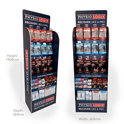 Physiologix PVC Foamex Display Stand- Dimensions: 600mm W x 1900mm H x 360mm D- 3 Shelves + 3 Levels of Hanging Space- Easy to Assemble