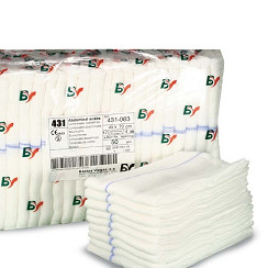 ¥ Non-Sterile 12 Ply X-Ray Detectable Laparoptomy Sponges (with tape) are made from 13 thread bleached 100% pure cotton¥ X-ray thread is monofilament type, with at least60% of barium sulphate, one thread by layer¥ Ties in 5's¥ Machine folded with superior finish¥ Sewing thread also 100% cotton and unbleached without any optical agents¥ Size:45 x 45cm