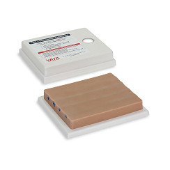 This unique training aid permits the realistic practice of starting an IV as well as being an excellent model to practice the mechanics of ""no stick"" IV catheters. Model displays blue veins which are barely discernible through the semi-transparent, tissue-like material. When accessing, the skin rolls as you palpate the vein and a ""pop"" is felt as the needle enters the vein. This model has three veins of different diameters and a fourth vein deeply placed. Model enables the user to increase the difficulty and thus improve skills. Made with latex-free Dermalike that offers 50% less needle drag when accessing underlying veins and improved tear resistance which permits a greater number of needle ""sticks."" Also comes with a protective, snap-on cover over the tissue pad. This lightweight, easily transportable, economical, and nonstaining training model is an alternative to larger, heavier, and more expensive models. Overall dimensions: 6-1/2 in. x 5-1/2 in. x 1-1/4 in.One-Year WarrantyShip Weight: 1 lb.Dimensions. (Inches): 9 x 7 x 2