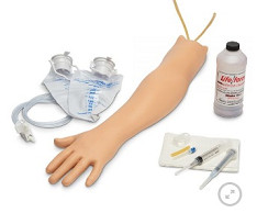HEMODIALYSIS PRACTICE ARMIn the tradition of Life/form¨ products, the Hemodialysis Practice Arm features the realistic appearance and performance necessary to provide ideal practice for trainees or patients. This valuable training aid is easy to set up and use to demonstrate preparing the patient's arm for hemodialysis. An established fistula is accessible and the system can be pressurized with artificial blood so that there is an actual flashback when a needle is introduced. The artificial blood approximates the pale shades usually common in dialysis patients. Easily maintained, this simulator is designed with replaceable skin and vascular system. Complete with one pint Life/form¨ venous blood, one pint Life/form¨ arterial blood, two fluid supply bags, instruction booklet, and soft carry case. Five-year warranty.