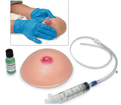 The Lactating Breast Replica can be used to train medical staff, a new mother, or a mother-to-be.In addition, breast replica can help educate training medical staff as well as new parents. Made of soft, lifelike material.Includes a syringe with tubing, lubricant, instruction card, and storage box.