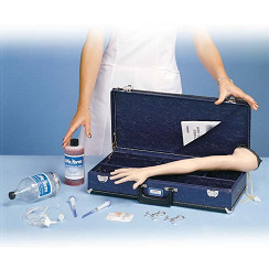 ¥ Lifeform Paediatric Injection Training Arm is ideal for the practice of venipuncture and intramuscular techiques and procedures used in young children¥ Exact reproduction of the arm of a six year old child¥ Soft foam is used to simulate the deltoid muscle and allows the student to get the feel of administering intramuscular injetions to children¥ Simulated bone in the shoulder defines and limits the injection area¥ Water can be used an an injection fluid in shoulder area ¥ Size: 56 x 28 x 15cmPaedriatric Injection Training Arm Includes:¥ Arm¥ Fluid supply bag¥ 3cc syringe¥ (1 Pint) LifeForm Blood¥ Teaching Guide¥ Hard Carrying Case¥ 3 Year Warranty(REPLACEMENT SKIN & VEIN KIT-LF00986U)