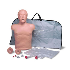 ¥ Simulaids 'Brad' CPR Torso Manikin is a lifelike manikin for training in CPR techniques¥ Long torso for abdominal thrusts, head and chin lift for opening airway and anatomical markings for sternum and ribcage plus substernal notch¥ Airway can be manipulated to stimulate airway obstruction or choking situations¥ Snap on airway/lung unitSimulaids Brad CPR Manikin Includes:¥ (3) disposable lung airway systems¥ (3) mouth/nose pieces¥ Nylon carry bag ¥ Kneeling pads