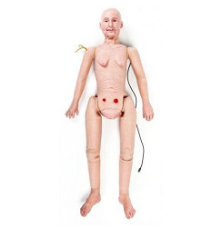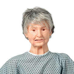 A comprehensive male/female elderly patient care trainer for medical simulation. Evolving from our GERi/KERi full body manikins, it has a more realistic look and feel accurately representing the human anatomy. Weight is distributed to represent a real patient for lifting and carrying.Key Features:Passive Range of MotionSeating, laying, finger/toe manipulation with no effort from patient.Enhanced AestheticsSoft silicone skin with noticeable normal and cancerous skin moles, stage 1 sacral ulcer and reddened skin folds.Grooming & Daily Living AssistanceBathing, clothing changes, denture placement/removal, hearing aid placement/removal, eye irrigation and optic drops, ostomy and urinary catheter care, hair care