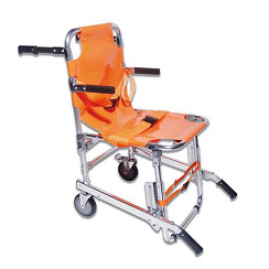 SEATED PATIENT CARRIAGE CHAIR FUNDAMENTAL ITEM FOR EXTREMELY NARROW HALLWAYS: STAIRS, CORRIDORS, ELEVATORS OR WHERE THE STANDARD STRETCHER CANNOT PASS THROUGH. WITH 4 HANDLES, THE 2 FRONTAL ONES. MADE OF LIGHT ALUMINIUM AND WITH A WATERPROOF NYLON ORANGE SHEET, WHICH HAS A POCKET SITUATED IN THE SEAT BACK. WHEN FOLDED HAS A MINIMUM OVERALL DIMENSION. LOCKING SAFETY LATCH AUTOMATICALLY RELEASES WHEN CHAIR IS FOLDED. 2 QUICK LOCK SAFETY BELTS TO IMMOBILISE THE PATIENT AND AN EASY CARRIAGE ON SMOOTH GROUND IS SUPPLIED BY THE 2 FIXED WHEELS.WEIGHT: 8.50 KGLOAD: 150 KG