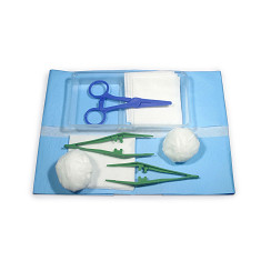 Sterile Dressing Pack Number 3 Includes:¥ (1) Wrapping field: 50 X 50cm¥ (1) Tray: 18 X 9.5cm¥ (2) Gauze swabs: 7.5 x 9cm¥ (4) Gauze Swabs: 7.5 x 7.5cm¥ (2) Gauze balls: Size G¥ (2) Forceps¥ (1) Clamp