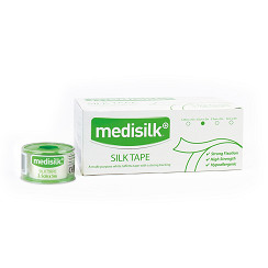 Medisilk Silk Tape is ideal for the fixation of dressing pads and medical devices. This is a silk finished, non-stretch, water repellent, tape with a strong, hypoallergenic adhesive. The porous hypoallergenic tape makes it ideal for use on patients with sensitive skin, as it allows the skin to breath through it. Product Features:¥ High strength, comfortable, taffeta-backed tape with convenient bi-directional tear¥ Adheres well to dry skin¥ Macro-perforated¥ For securing bulky dressings, heavier tubing and small splints.¥ Coated with a solvent free waterproof adhesive¥ Suitable for sensitive skinSilk tape can be used as a base layer for sports strapping, or as a first aid tape to fix and retain dressings. It can also serve as a non-latex alternative to zinc oxide tape.