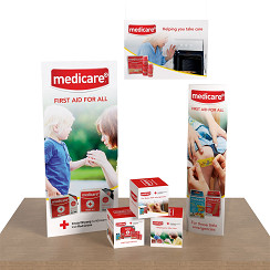 Our eye catching Window Display Kit - the kit is designed around our bestselling Plasters/Strip Dressings & First Aid Kit ranges.MEDICARE WINDOW POS DISPLAY KIT INCLUDES STANDEE STRUTCUBETOTEMHANGING BOARDLARGE DUMMY PACK OF MEDICARE PLASTERSALL COMES FLAT PACKED